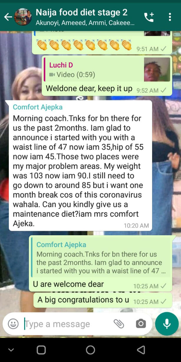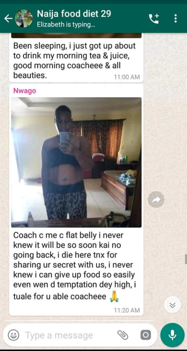 Listen...You can drop that belly fat in the next 8 weeks like the people you see above if you will take advantage of this program now.When Mrs Abiodun was relating to me the sleepless nights experience when she couldn’t feed her baby with enough milk.I could feel the pain from her voice.Like one of my clients, Mrs Gloria.