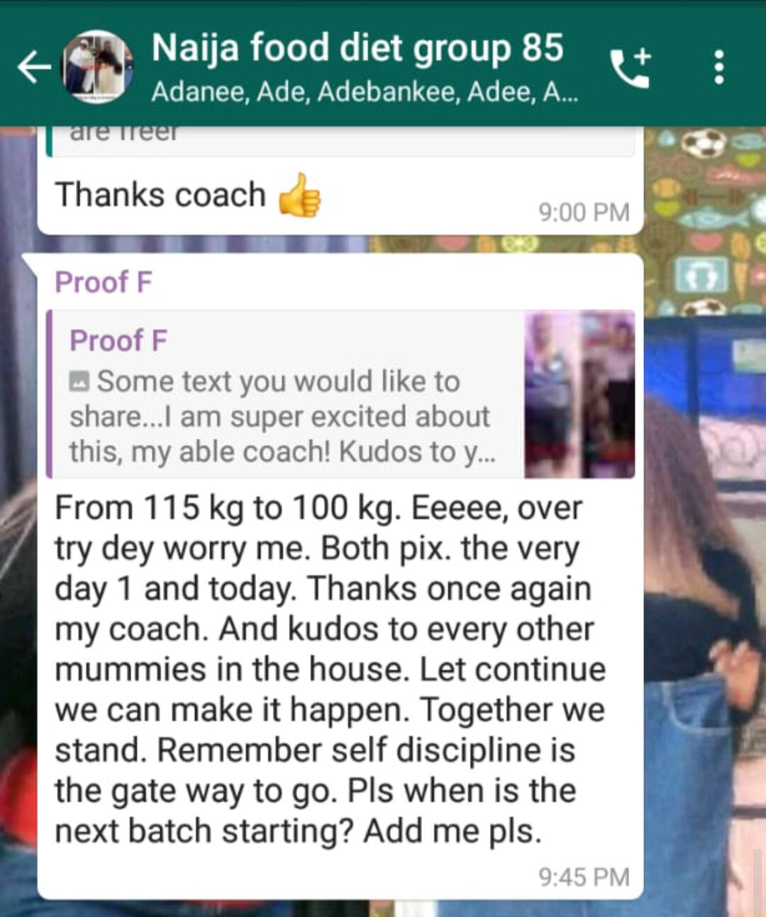 There’s Madam Xino she is very hilarious...She was doing Exclusive breastfeeding and was bothered if it will affect her if she joined the program,Almost 60% of the women that join this program do Exclusively nurse there babies...